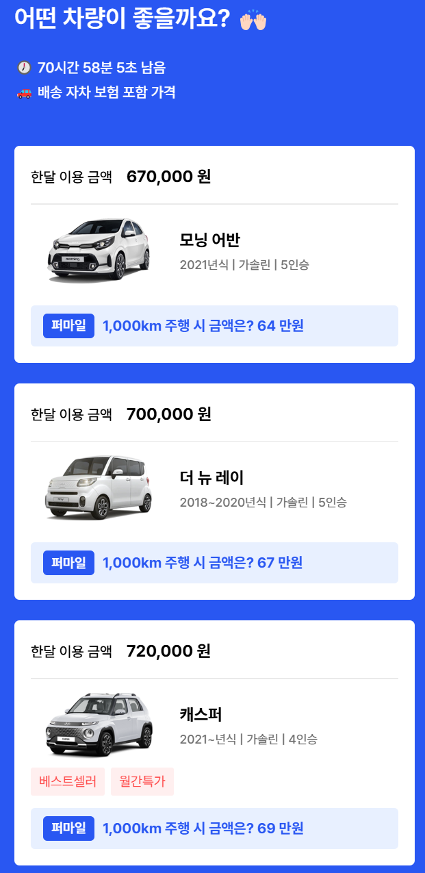 ☞ 바쁘신 분들은 아래에서 경차 월렌트 비용비교표 확인하세요!