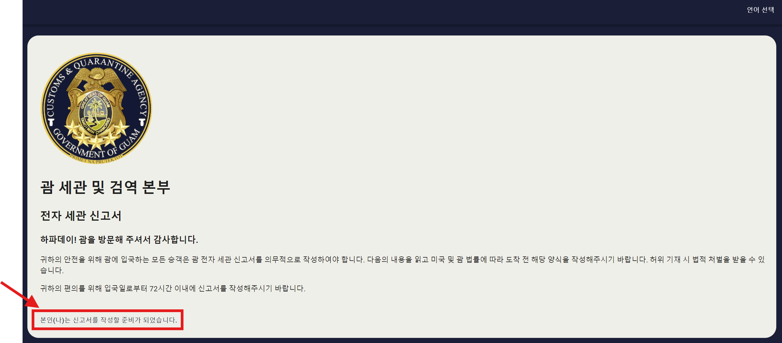 3. 아래 "나는 신고서를 작성할 준비가 되었습니다." 를 클릭하세요.