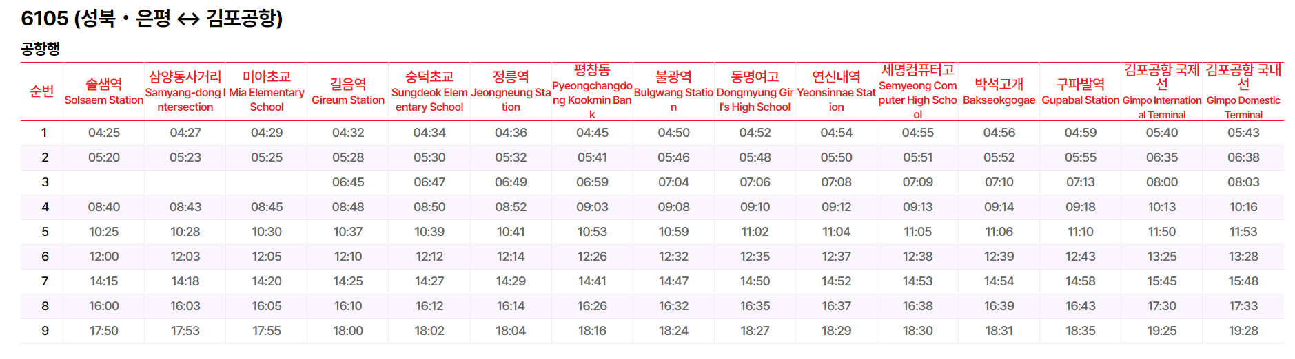 성북 / 은평 ↔ 김포공항 (수도권 제1순환고속도로 경유) - 6105 버스
