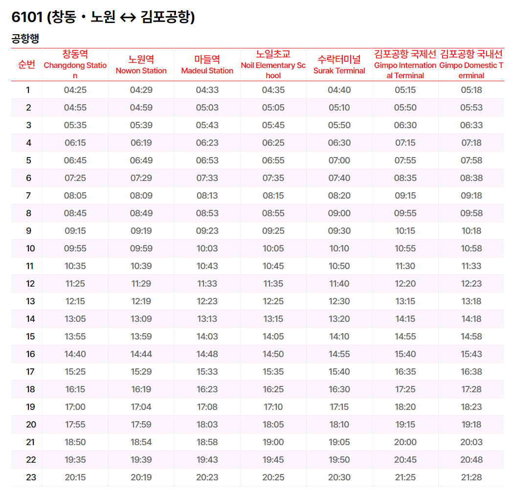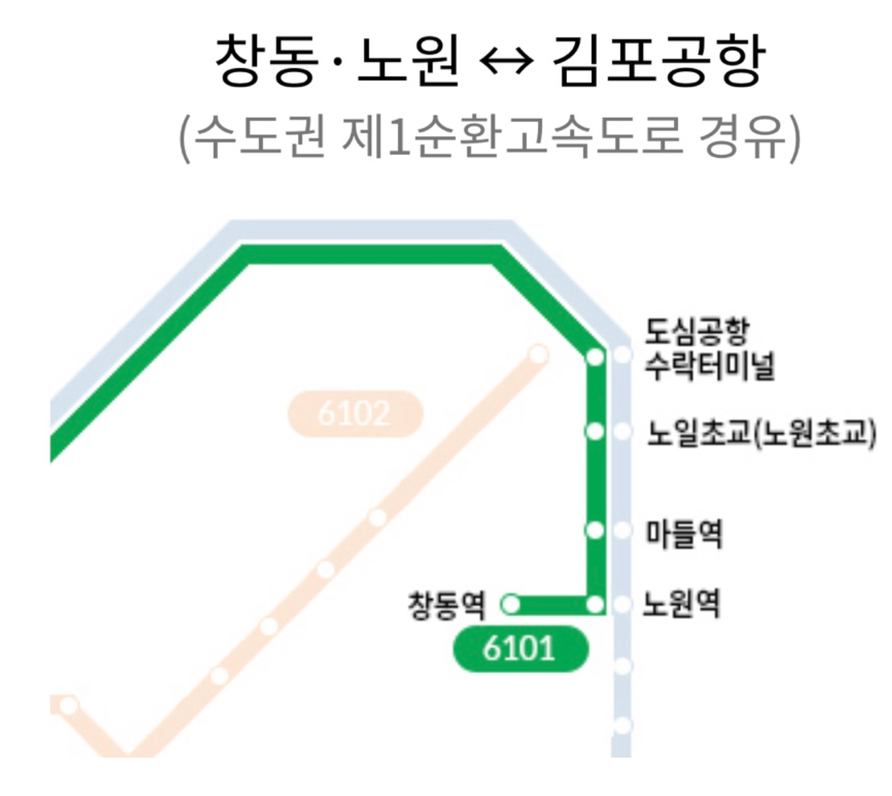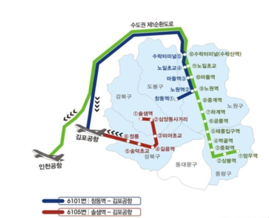 창동/ 노원 ↔ 김포공항 (수도권 제1순환고속도로 경유)-6101 버스