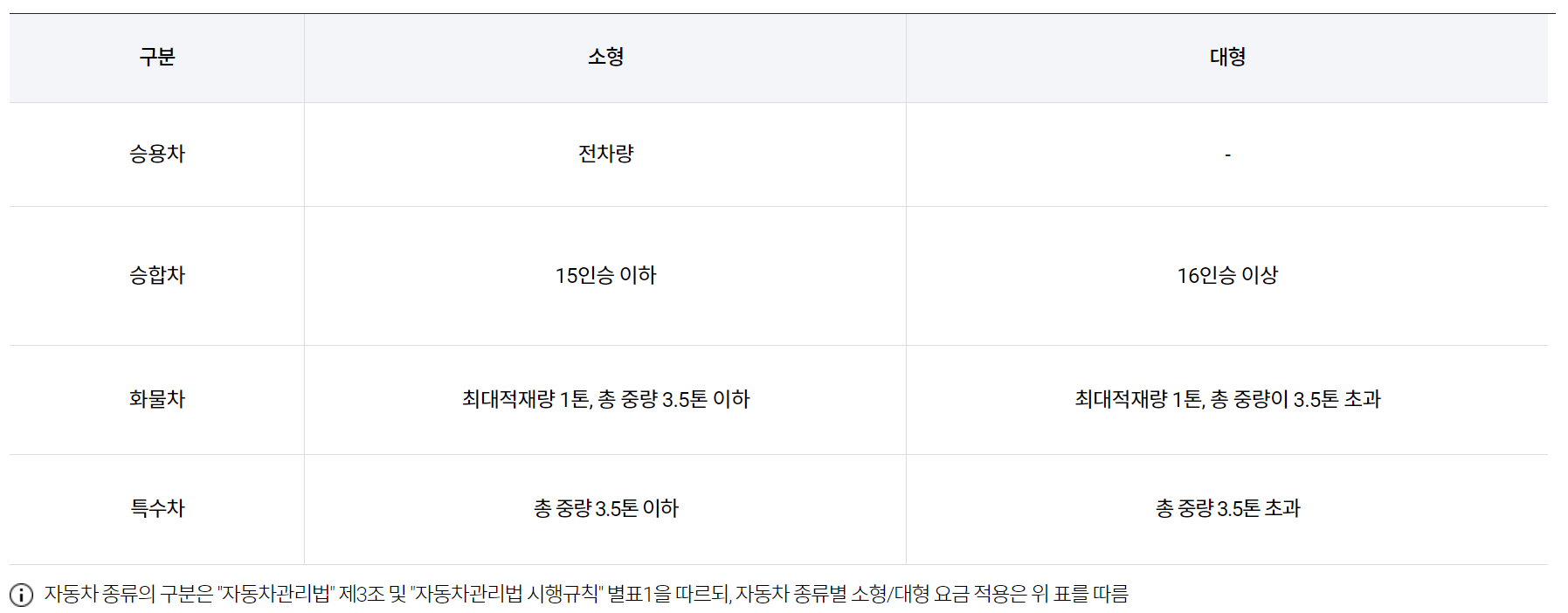 - 할인율 50% : 경차, 장애인/유공자, 다자녀, 저공해 1,2종