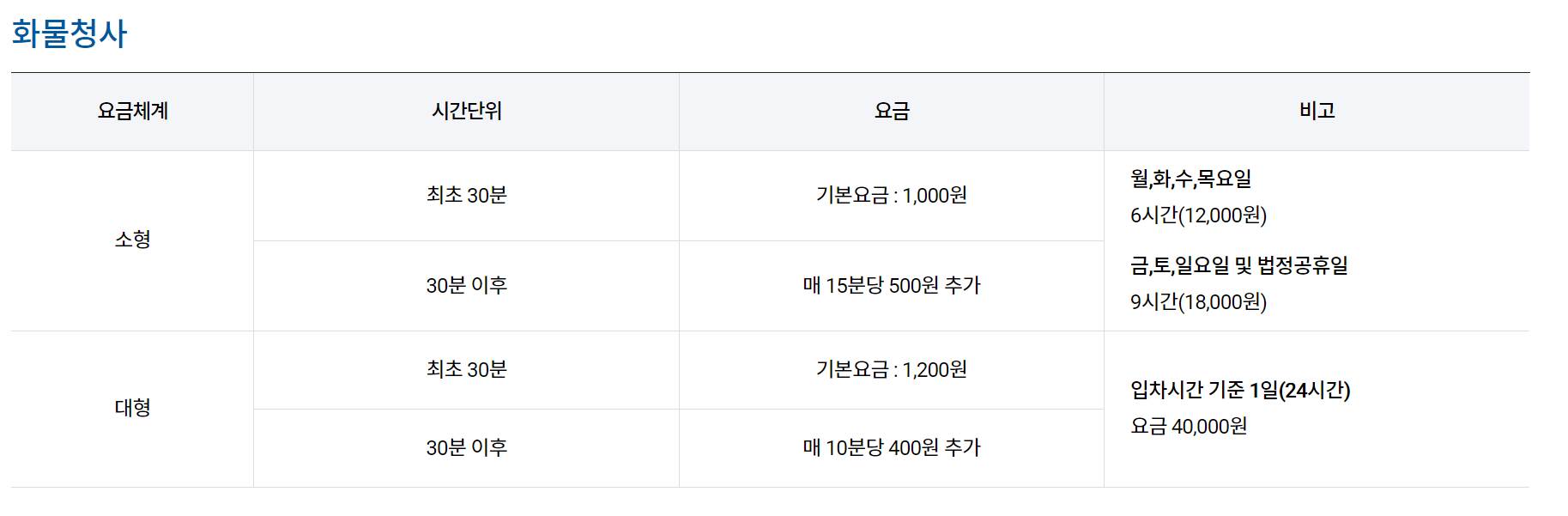 - 각 청사 주차장 별로 요금체계가 상이하오니 이점 유념하여 이용하시기 바랍니다.