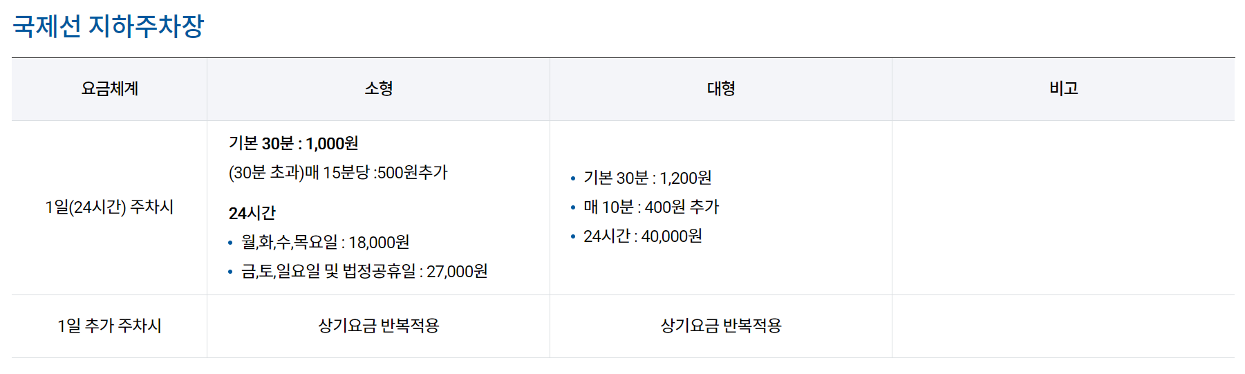 - 국내 1·2주차장, 국제선 지하주차장, 화물청사 주차장 이용 시 하이패스 결제 가능