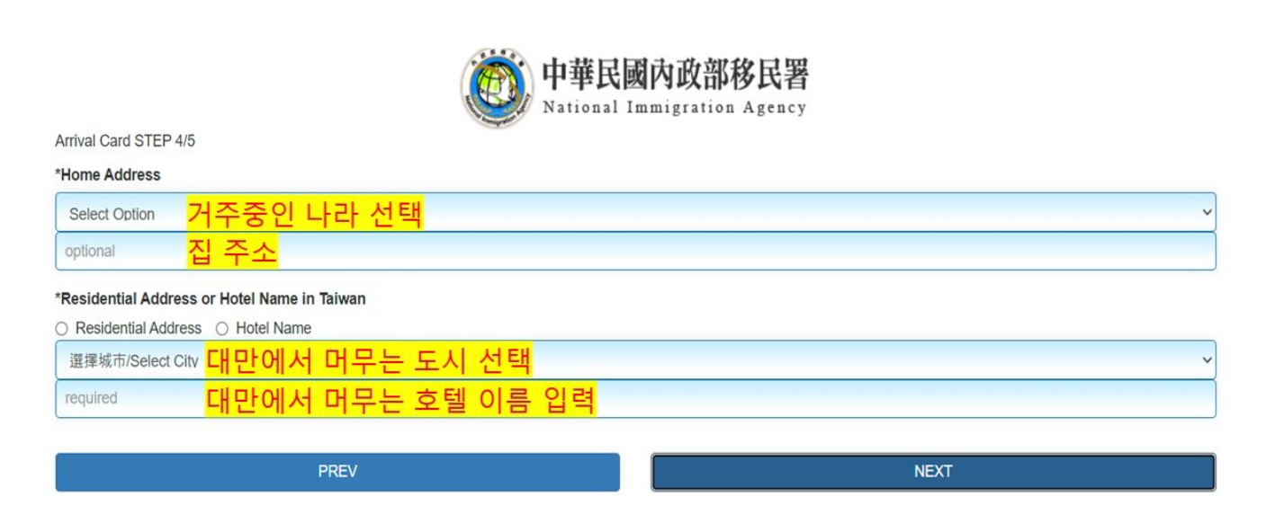 - 대만에서 머물 호텔명 또는 숙소의 영문명을 작성합니다.