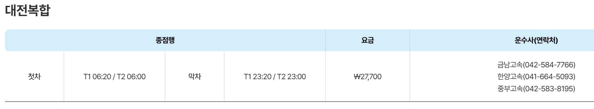 🚌 대전 인천공항리무진버스 터미널 1 탑승 위치