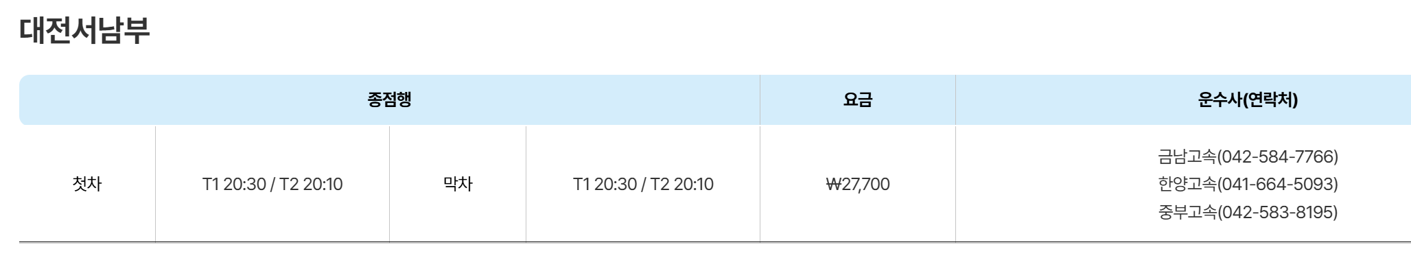 - 첫차시간: 06:20 (T1) / 06:00 (T2)