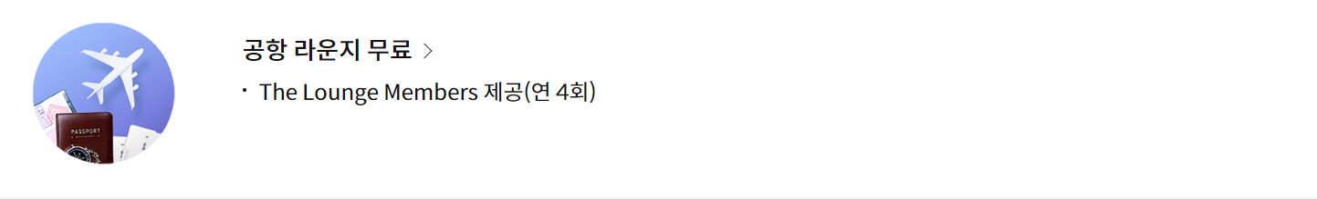 * 공항 라운지 이용권은 전월 이용 금액이 30만원 이상인 경우 사용이 가능