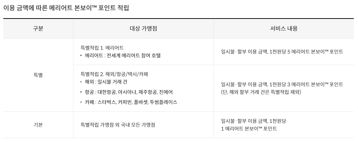 메리어트 본보이 더베스트 카드 - 포인트 혜택