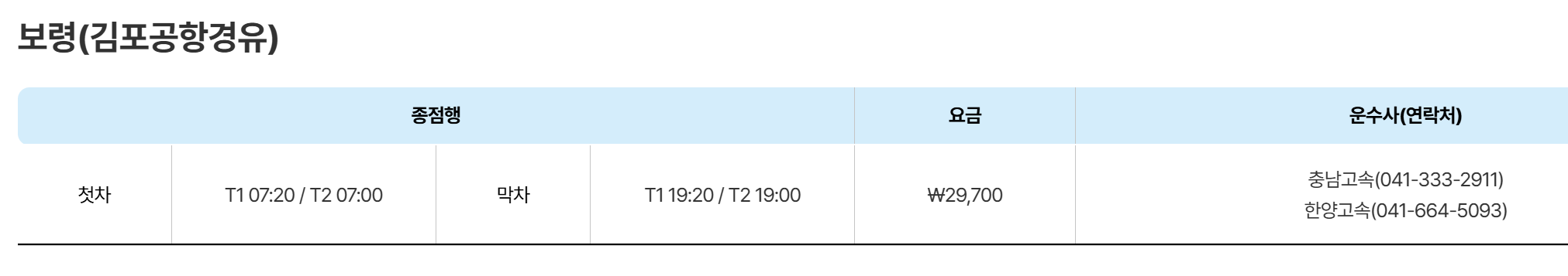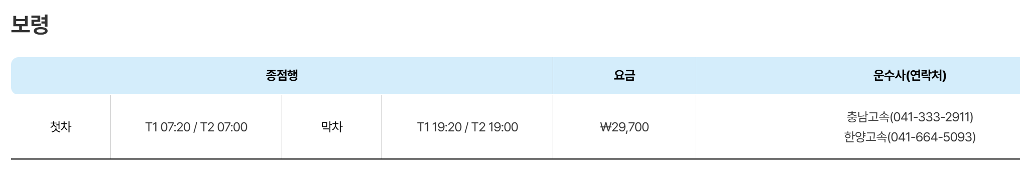 🎯 보령 홍성 내포 - 인천공항 버스 시간표