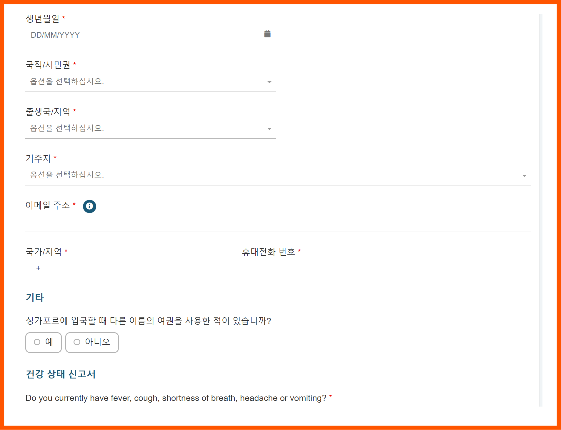 싱가포르 입국신고서 - 요약