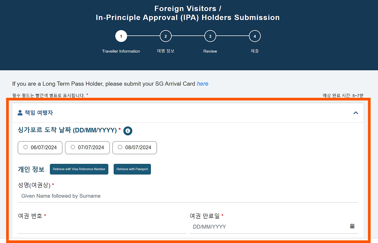 - 한국어로 지원이 되기 때문에 필요한 여행정보를 입력하고 제출을 클릭하세요.