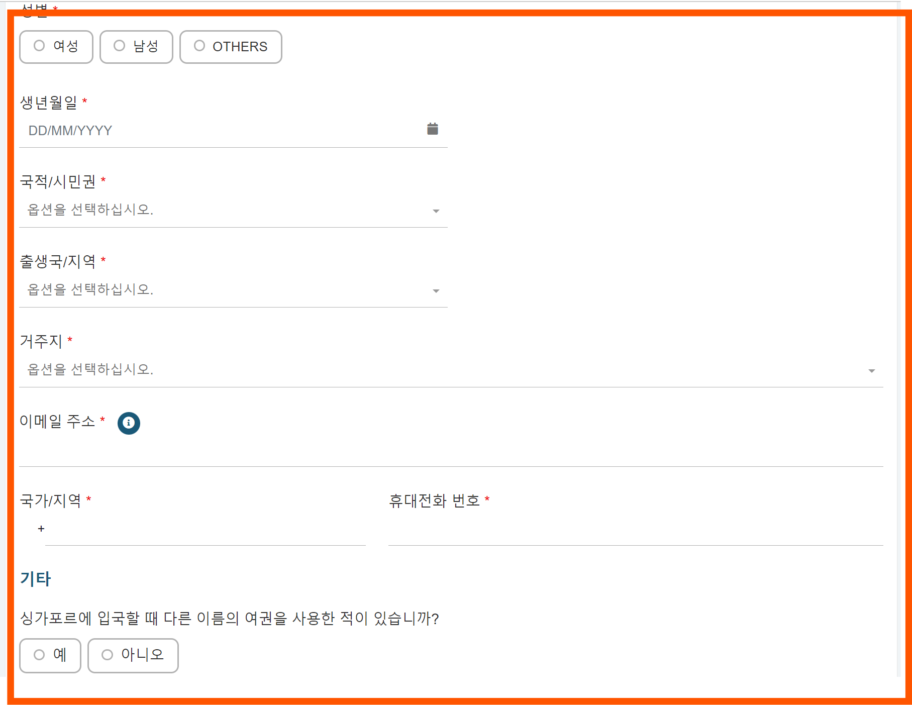 - 입국신고서 대상 : 싱가포르 관광객