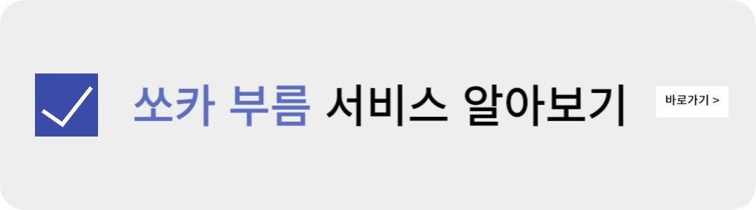 - 쏘카의 기본은 대여한 곳에 반납하는 왕복 이용 방식입니다. 단, 가까운 곳에 쏘카가 없는 경우, 부름 서비스를 이용하실 수 있습니다. (추가요금 발생, 서비스 가능지역한정)