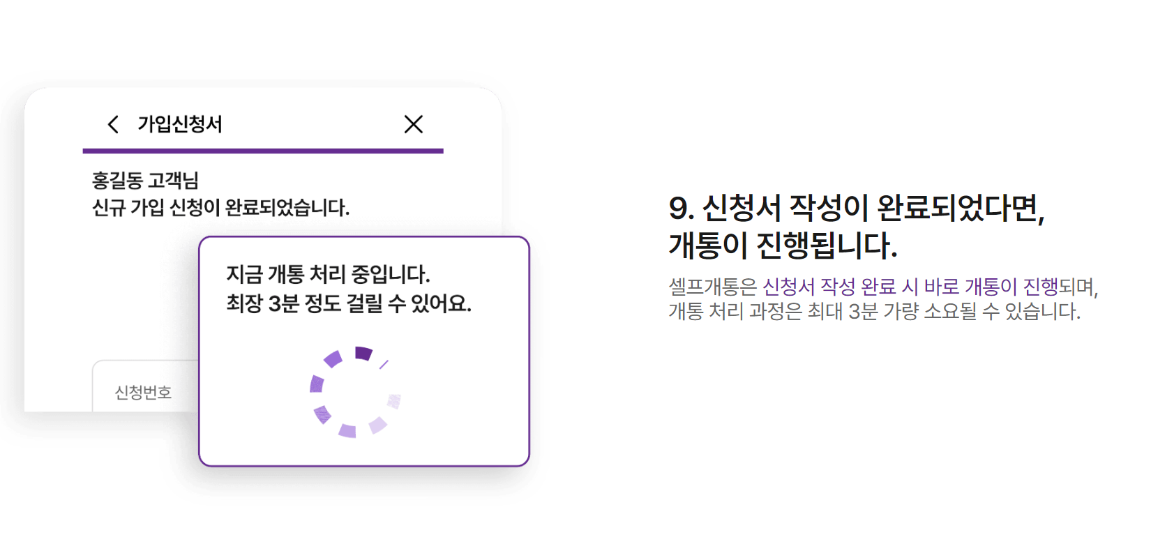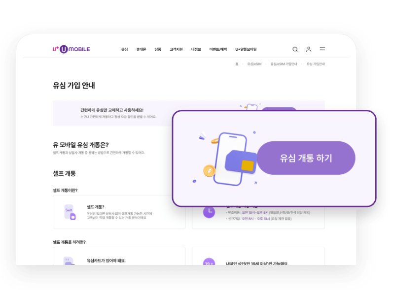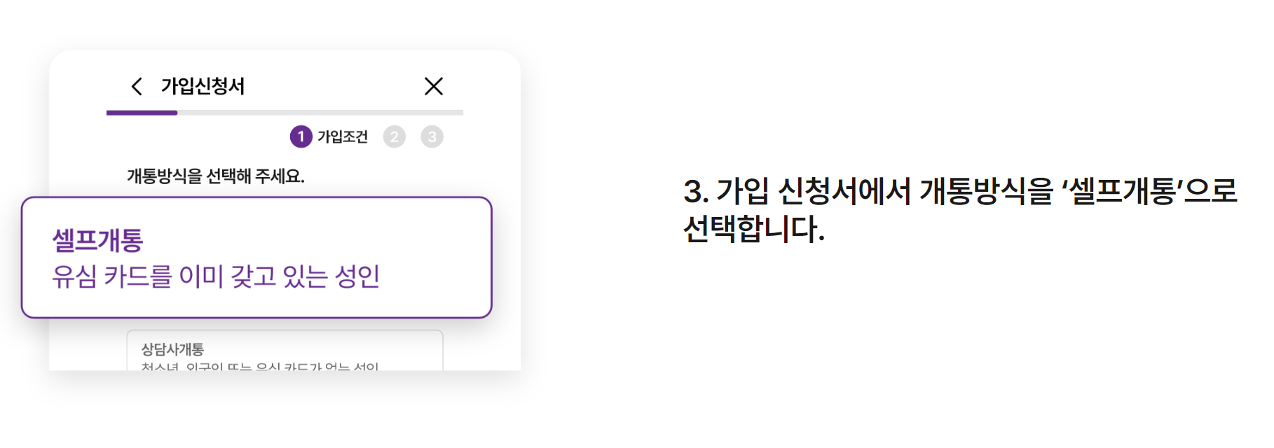 - 셀프개통 전 유심 카드를 미리 준비해 주세요.