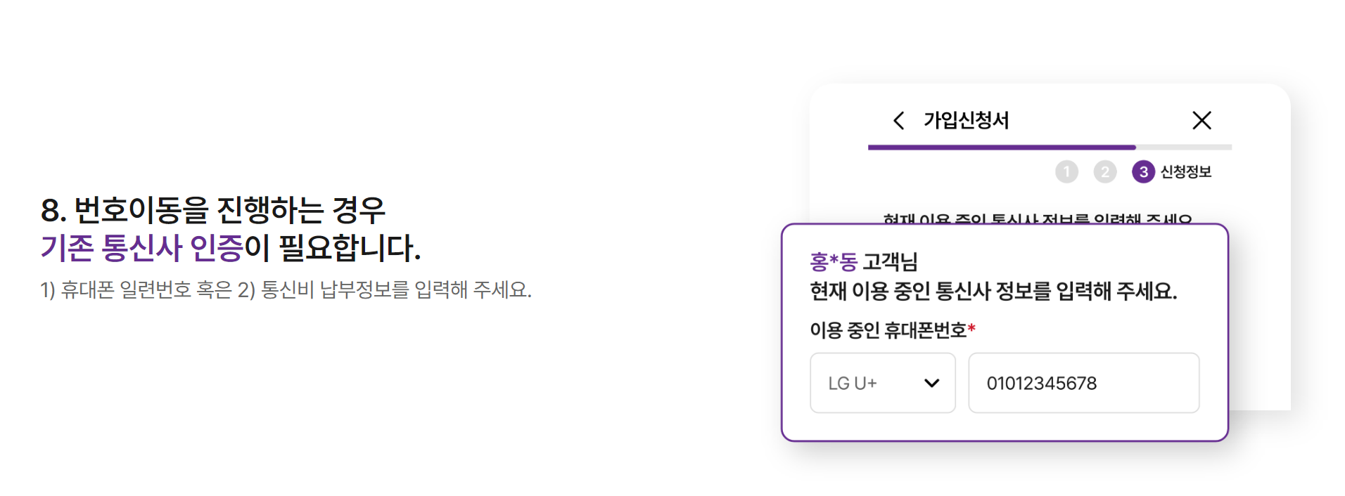 번호이동 : 오전 10시 ~ 오후 8시 (일요일, 신정/설/추석 당일 제외)
