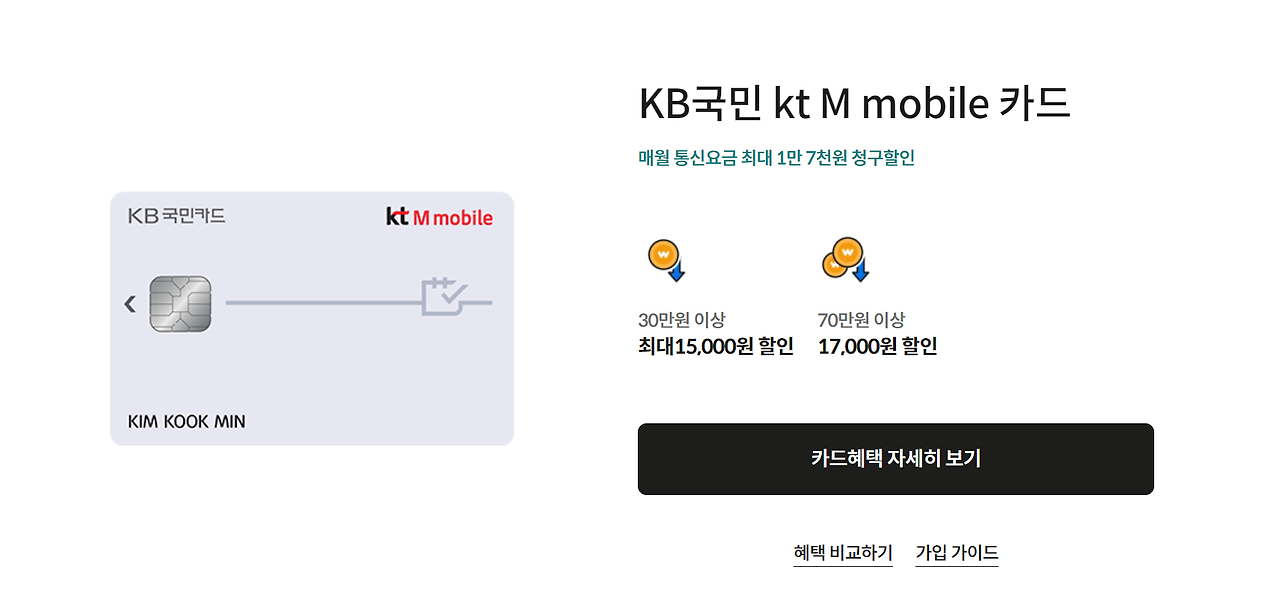 - KT 엠 모바일 제휴 카드를 사용하면 매달 최대 24000원 or 50% 할인을 받을 수 있습니다.