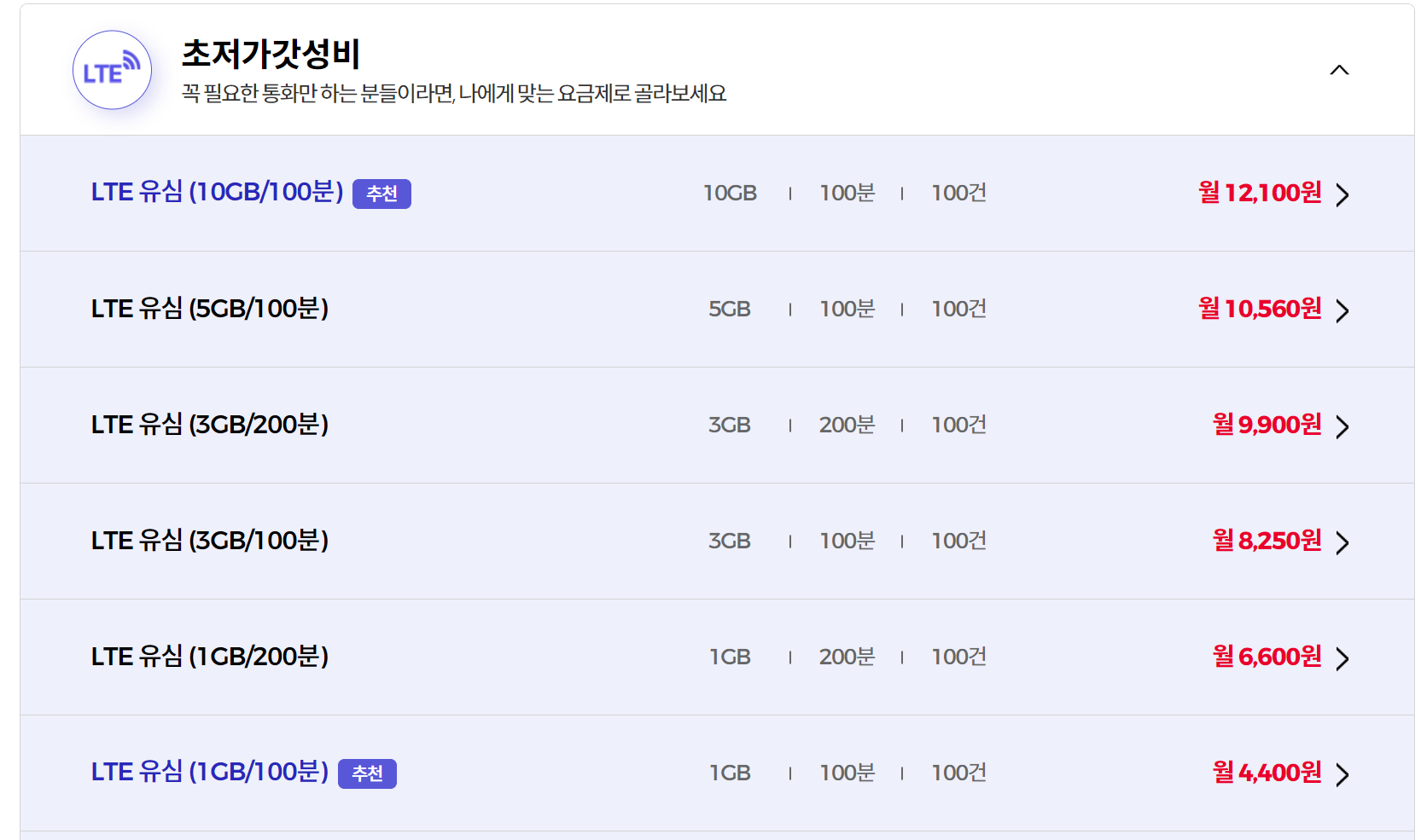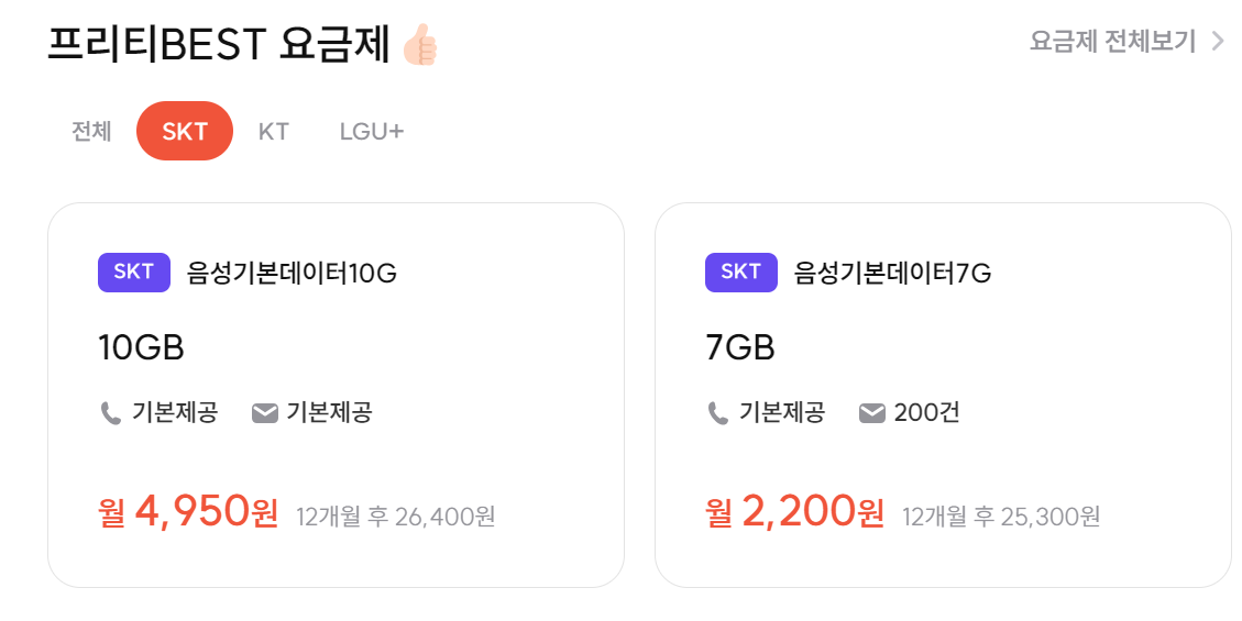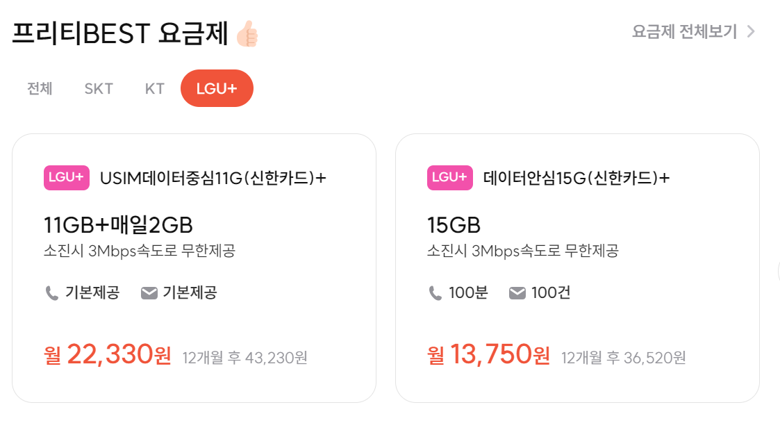 통합 알뜰폰 사이트의 경우 같은 요금제인데도 비용을 더 받는 경우도 있습니다. 가능한 통합사이트보다는 개별 알뜰폰 통신사에서 가입하는 게 더 경제적입니다.