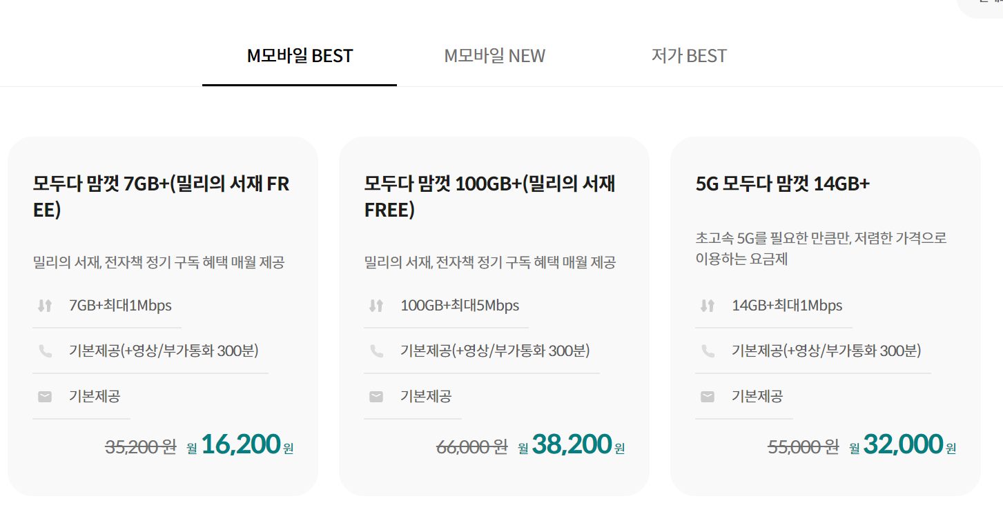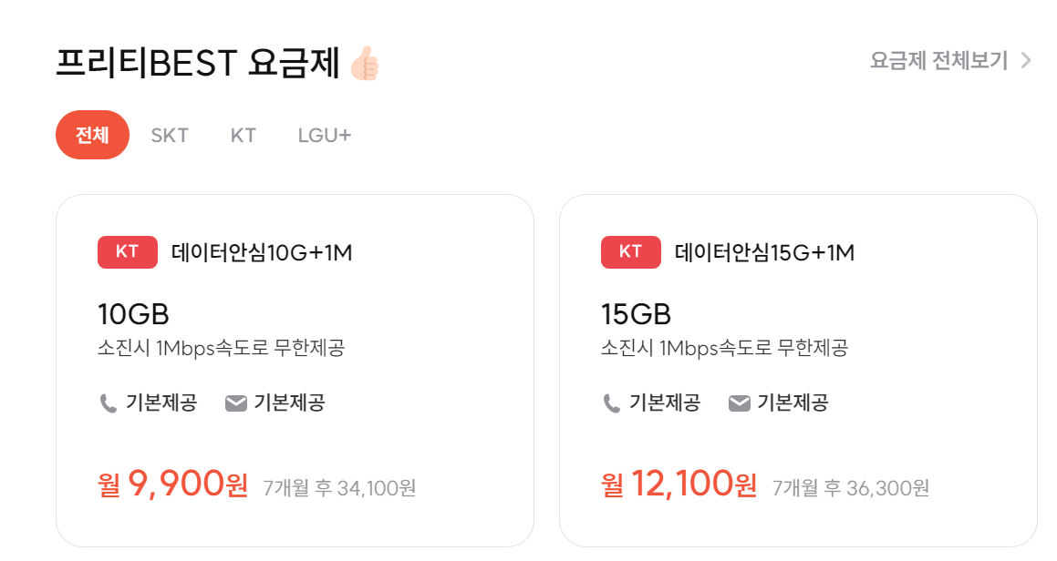 ☞ 더 많은 KT M 모바일 요금제를 확인하려면?