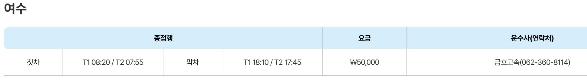🎯 여수 순천 - 인천공항 버스 시간표
