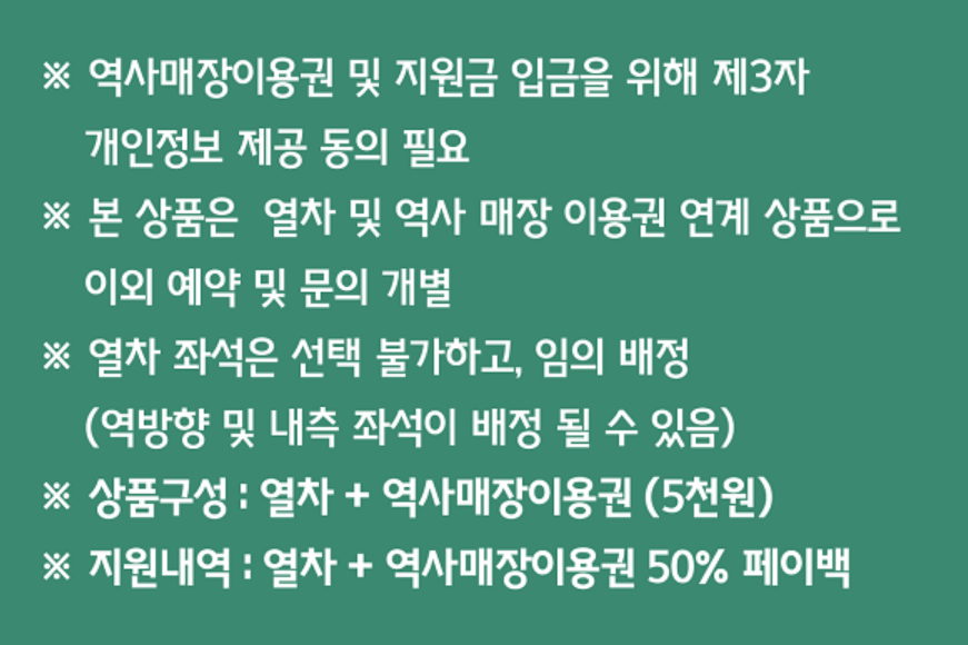 - 식음료 : 역사매장 이용권 (5천원권)의 50%
