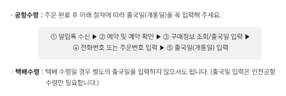 | Tip - 공항 수령시 출국일 입력이 필요해요! |