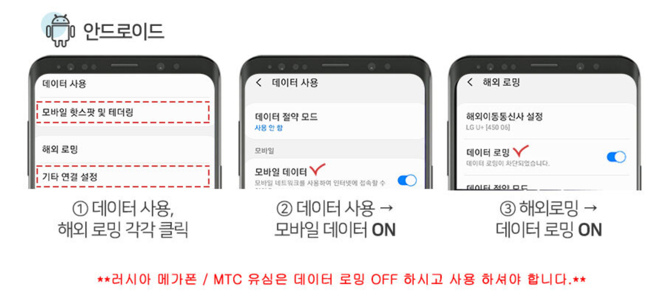 2) 안드로이드 유심 사용법