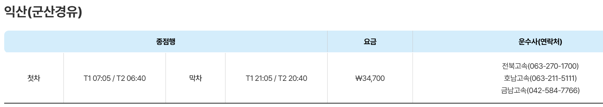 🎯 익산 / 대야 / 군산 - 인천공항 버스 시간표