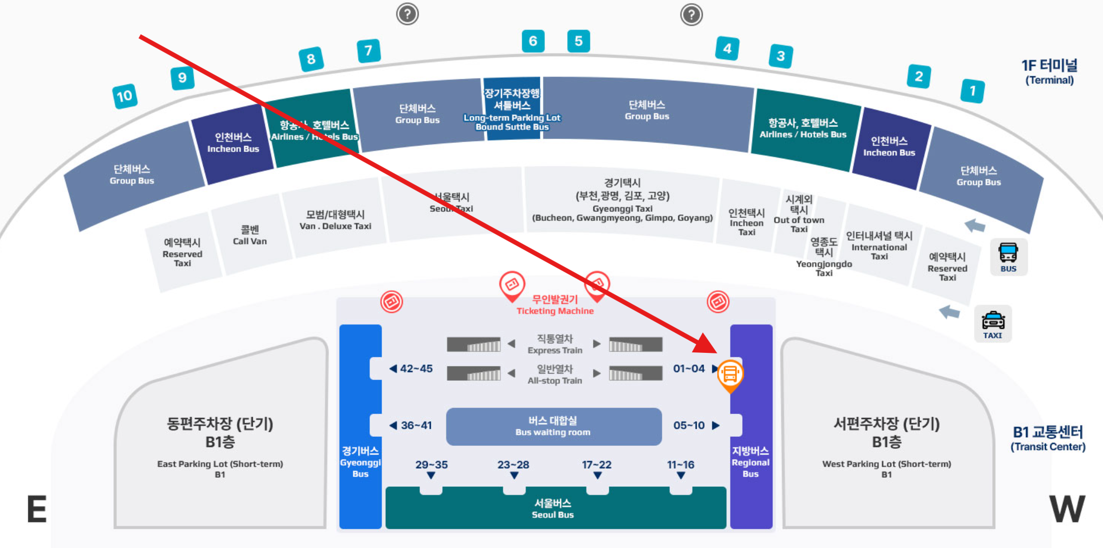 🚌익산 / 대야 / 군산 - 인천공항리무진버스 터미널 1 탑승 위치