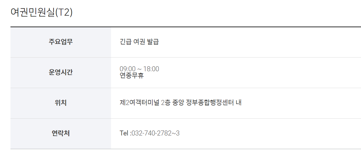 1.  인천공항 여권 민원실 (제 1 여객 터미널)