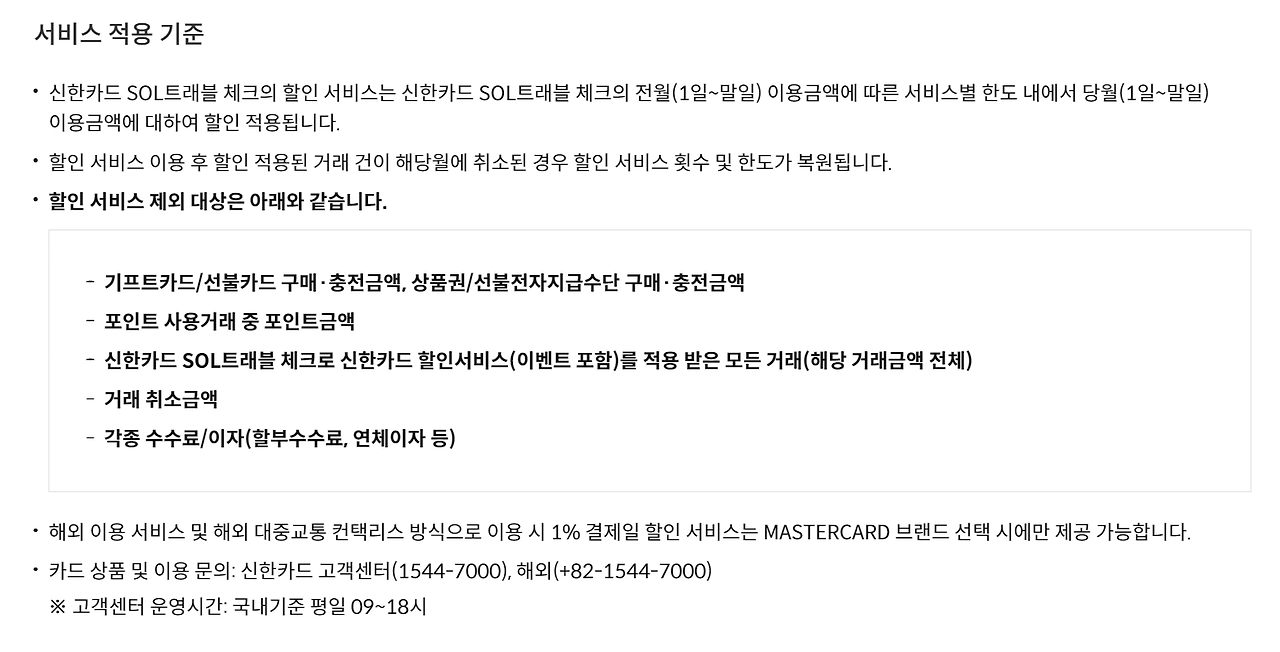 (단, 신한카드 SOL트래블 체크 신규발급 회원의 경우 카드 사용등록일의 다음 달 말일(등록월+1개월)까지 )