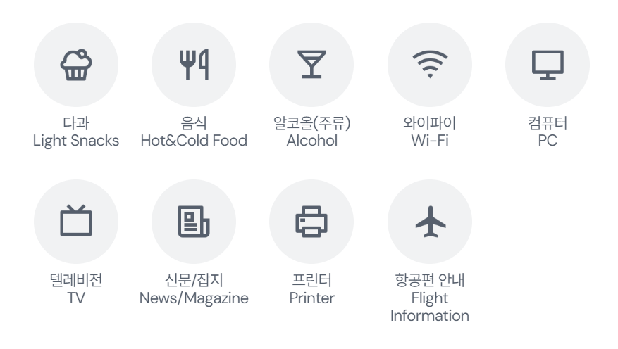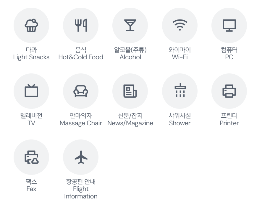 * 라운지 야간 운영 시간(22:00-06:30)에는 운영 특성상 주간 운영 시간에 제공되는 음식과 차이가 있을 수 있습니다.