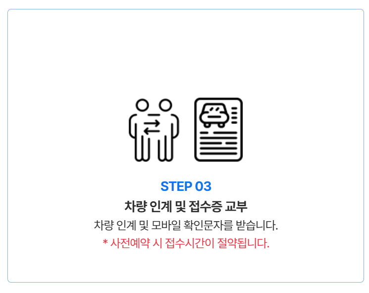 STEP 3 - 차량인계 및 접수증을 교부받습니다.