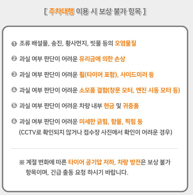 - 주차대행 공식업체의 접수요원은 공식 주차대행이 표기된 오렌지색 유니폼(●)을 착용하고 있습니다.