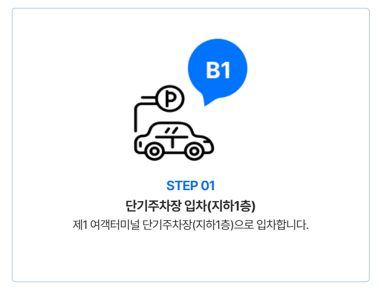 STEP 1 - 제 1 터미널 단기주차장(지하 1층) 을 찾으세요.