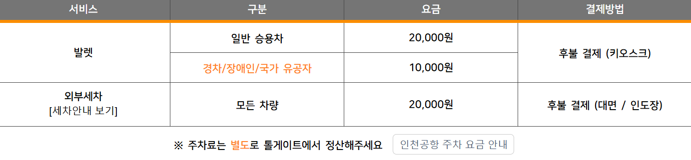 인천공항 공식 발렛 주차 대행 요금