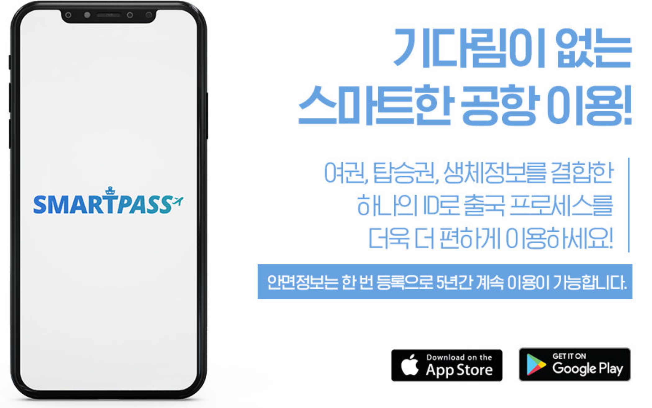 - 여권과 얼굴로 한번만 등록하면 최대 5년간 이용가능