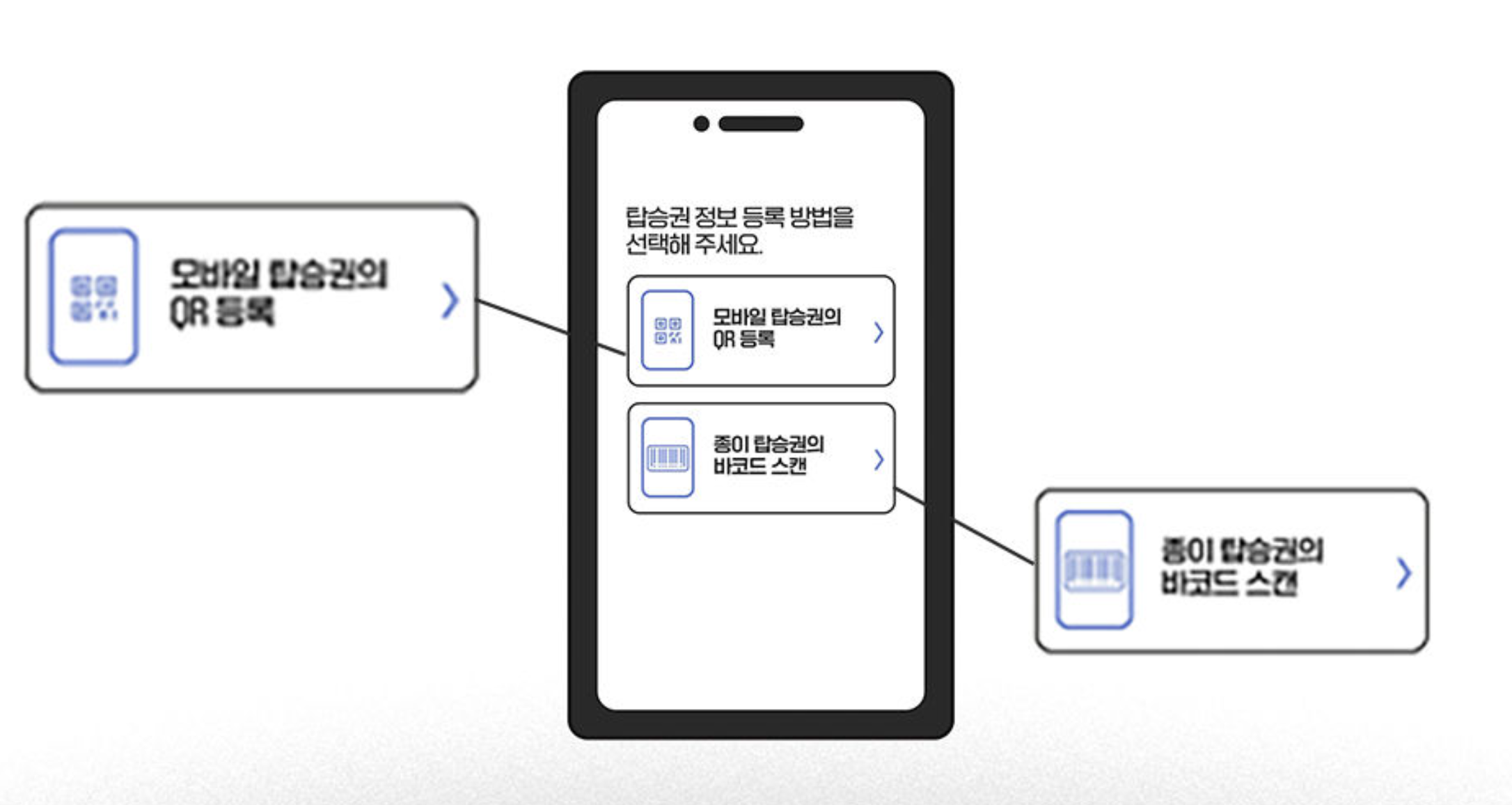 - 모바일탑승권, 종이탑승권 등록 가능