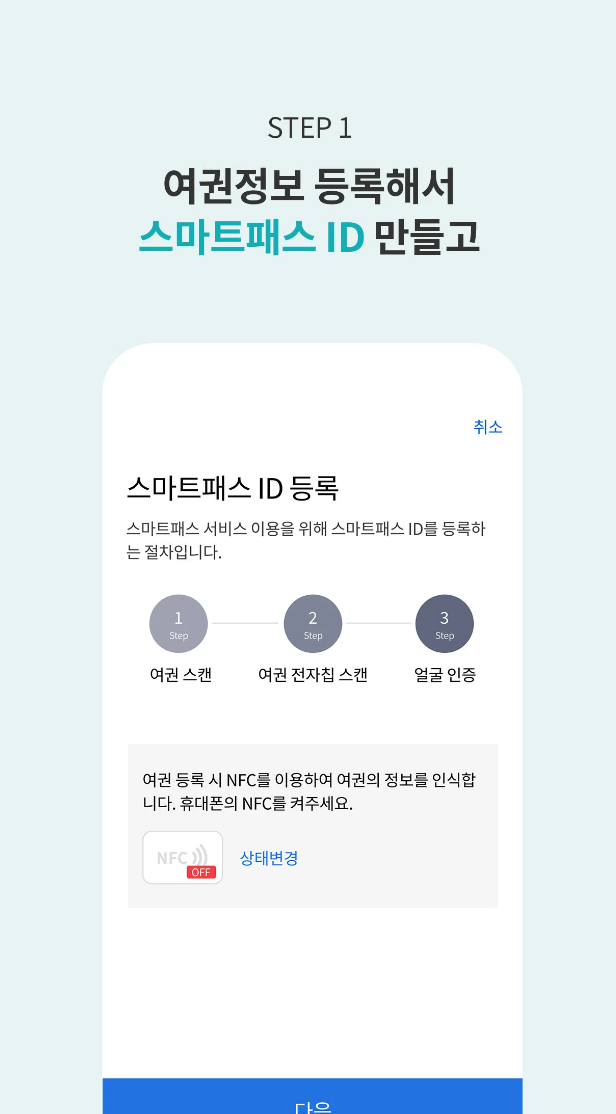 - 스마트패스ID를 등록하고 얼굴로 공항을 이용.