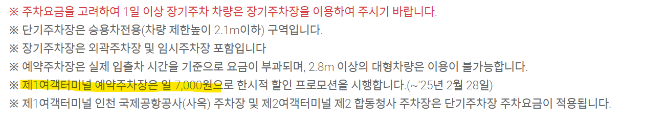 - 인천공항 장기주차장도 일반 주차장과 동일한 요금이 적용!