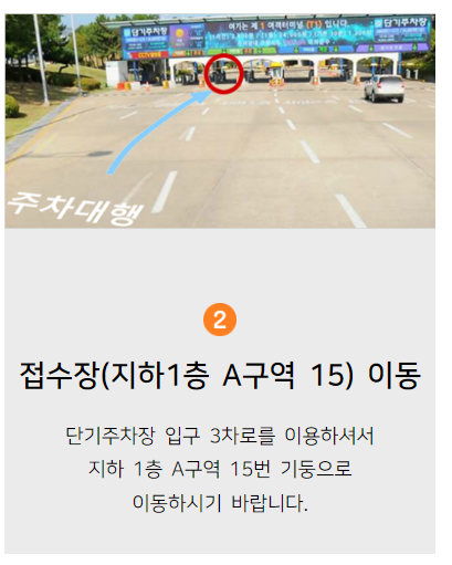 ※ 단기주차장 지하 1층 주차대행 전용 접수장을 제외한 타 주차구역에서 주차 시 단기주차장 요금이 발생합니다.