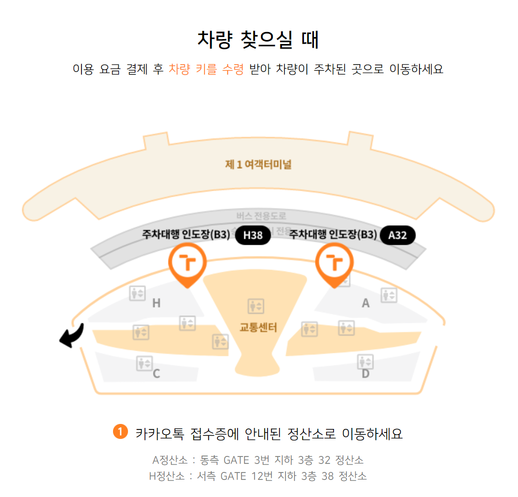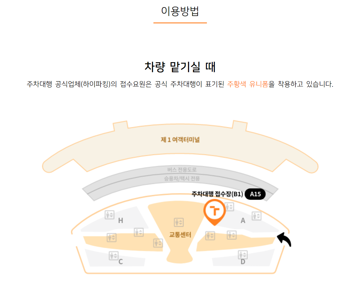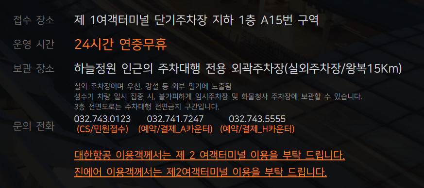 ※ 호객인들이 차를 인수하여 공항 밖 주변주차장에 주차시키는 공항 주변 사설주차 이용으로 인한 피해 또는 손실은 책임지지 않습니다.