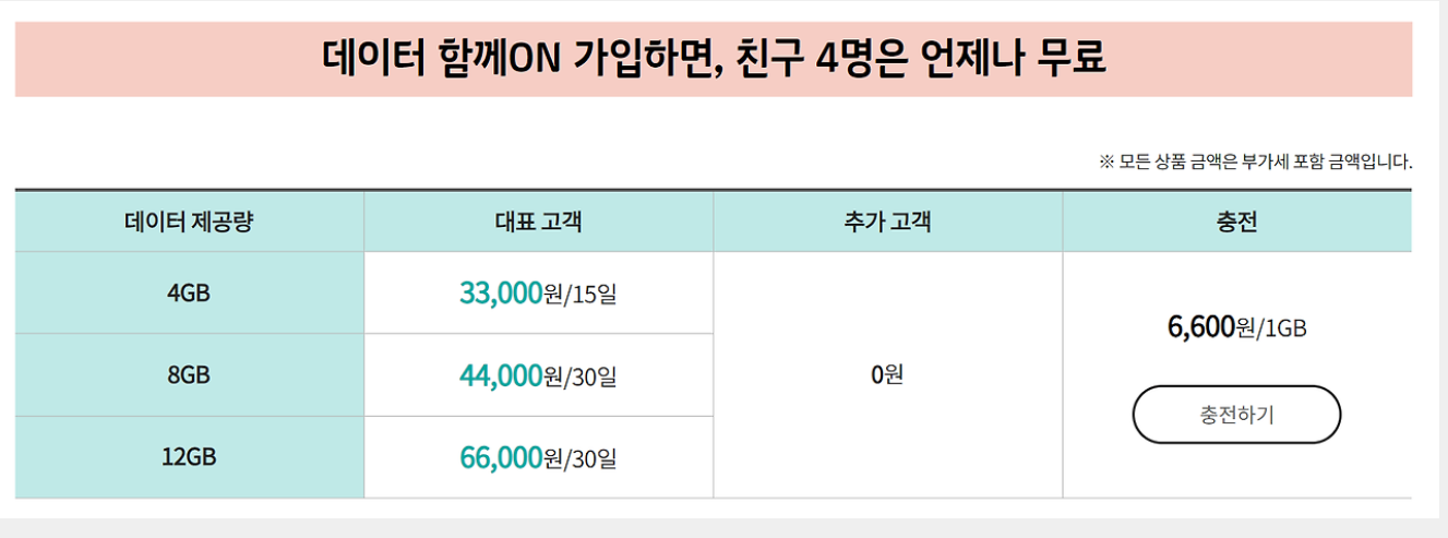 - 1명 신청으로 5명까지 사용이 가능한 데이터함께 ON 요금제 활용하기 |
