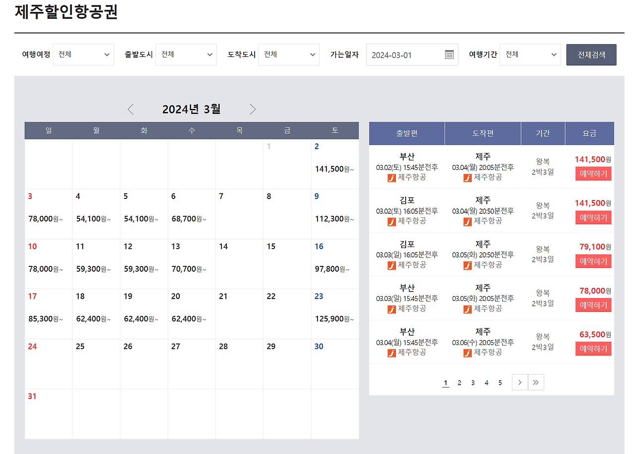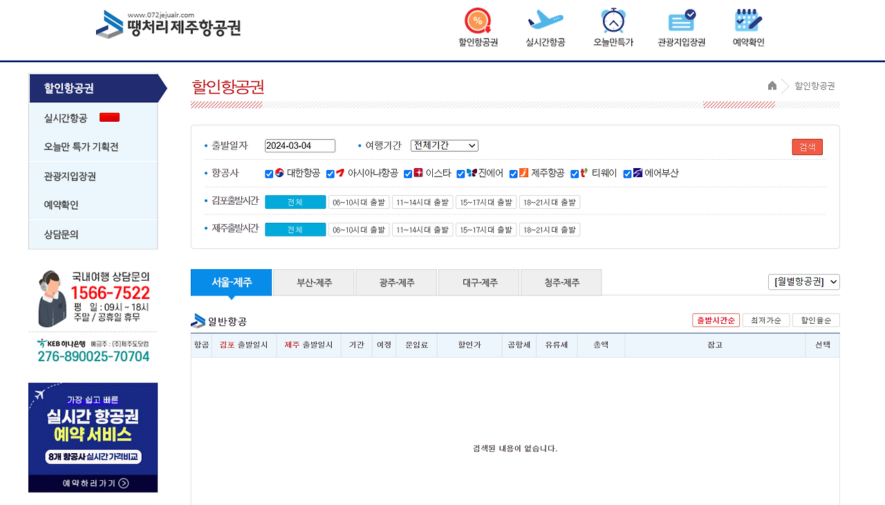 서울-제주, 부산-제주, 광주-제주, 대구-제주, 청주-제주 할인항공권도 필터링할 수 있어 편리합니다.
