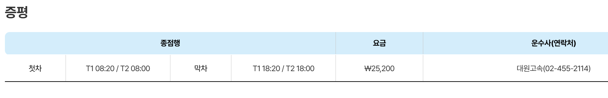 🎯 증평 충북혁신도시 - 인천공항 버스 시간표