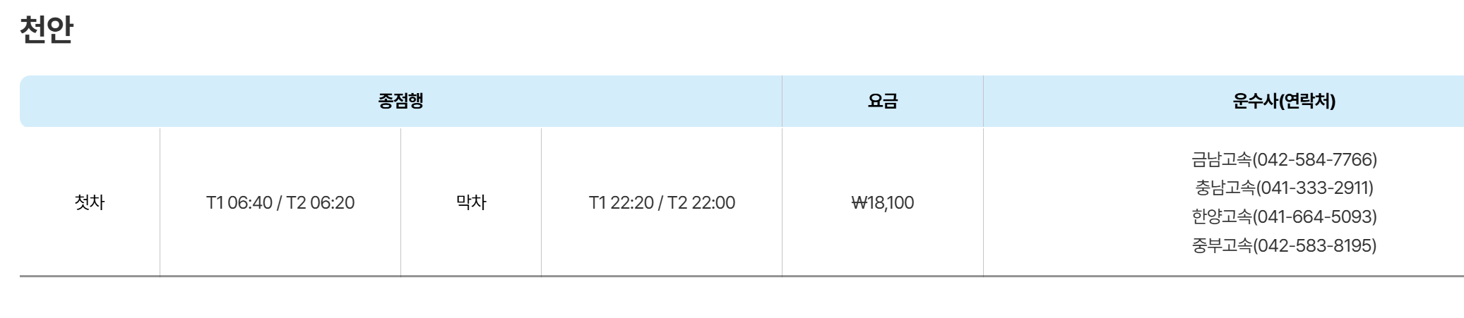 - 첫차시간: 06:40 (T1) / 06:20 (T2)