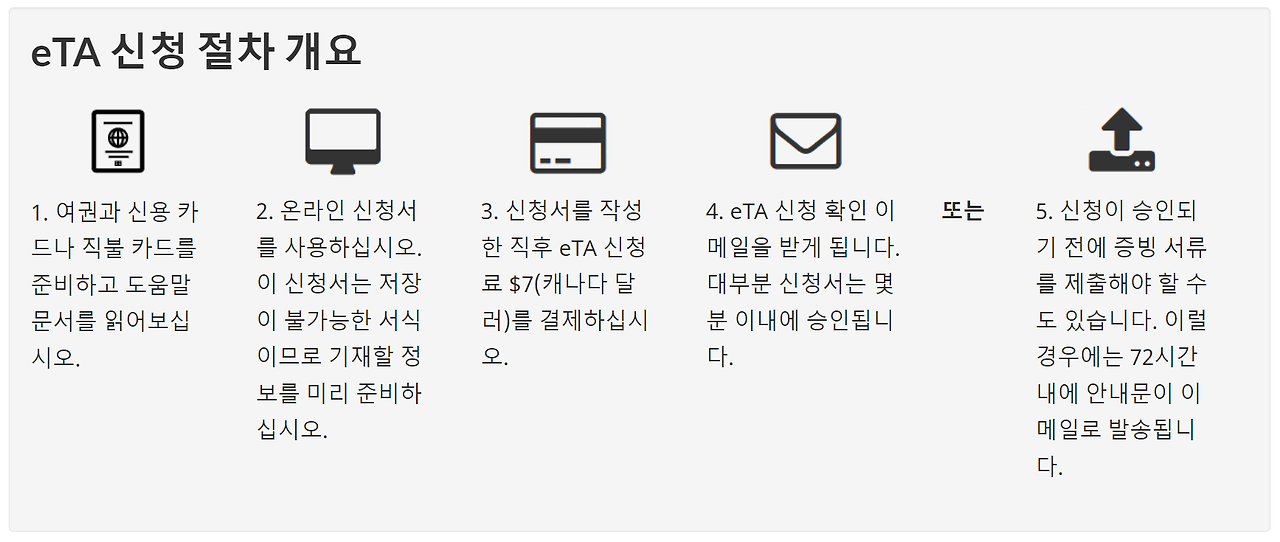 - eTA 준비물 : 여권, 이메일, 결제카드