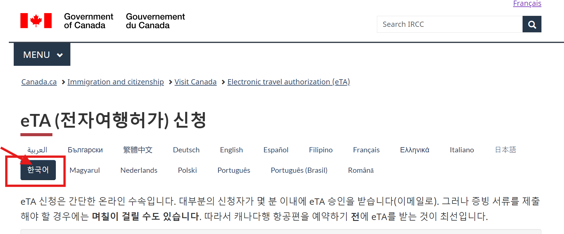 - 캐나다 eTA 전자 여행 허가증 발급을 받기 위해 아래 공식 홈페이지에 접속하세요!