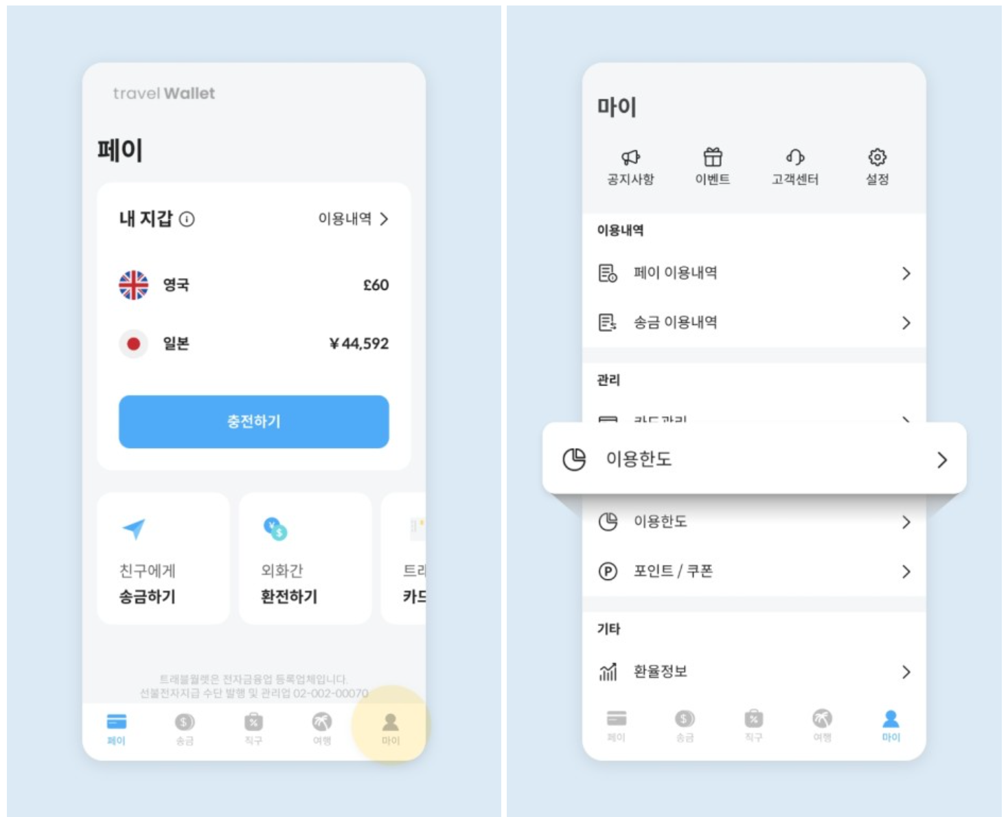 트래블월렛 앱 우측 하단 마이 ▶ 이용 한도에서 ATM 출금한도를 확인할 수 있습니다.