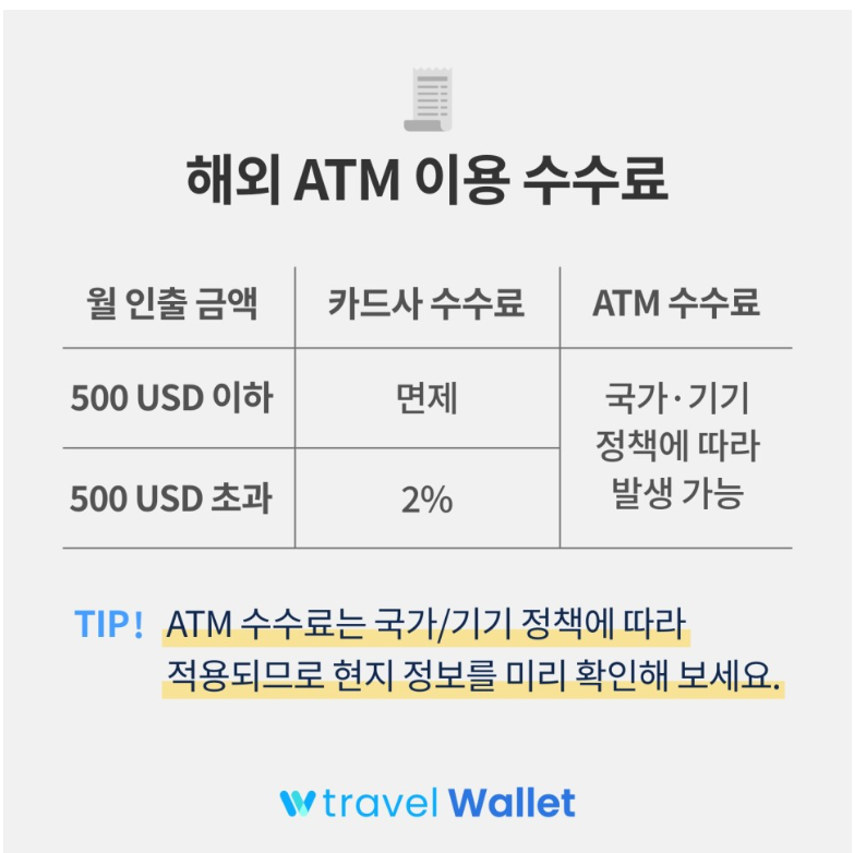 ☞ 카드사 수수료는 면제되지만, 현지 ATM 운영사가 부과하는 기기 수수료는 발생할 수 있습니다.