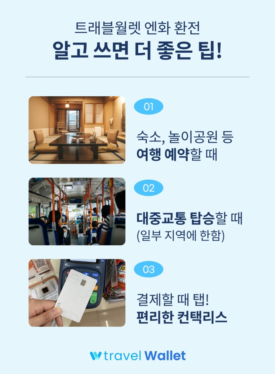 트래블월렛 트래블페이 실물 카드를 교통카드 대신 사용할 수 있어요.